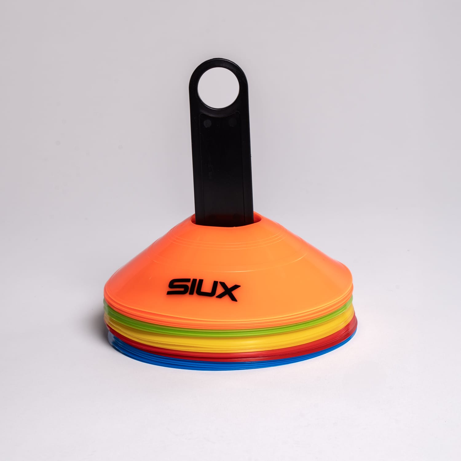 הקונוסים קלי משקל, ניתנים לערימה ונוחים לנשיאה ואחסון. בסיס מרובע מעניק יציבות על מגוון משטחים, והחומר העמיד לתנאי מזג אוויר מבטיח שימוש לאורך זמן. עם לוגו Siux למראה מקצועי וספורטיבי.