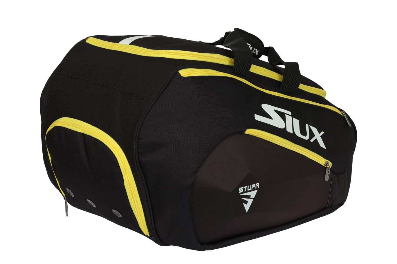 תיק הפאדל Siux Electra Stupa SS24 משלב נפח אחסון גדול, הגנה מתקדמת ועיצוב ספורטיבי מרשים. כולל שני תאים תרמיים לשמירה על מחבטים, תא מרכזי מרווח לביגוד ואביזרים ותא נעליים מאוורר לנוחות והיגיינה מקסימלית. דפנות קשיחות, רצועות גב מרופדות ונשיאה נוחה הופכים אותו לבחירה מושלמת לאימונים ולתחרויות.